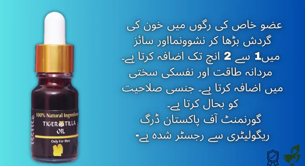 ٹائیگر تیلہ تیل ایک قدرتی اور محفوظ مساج آئل ہے، جو آپ کو تازگی اور بہتر صحت کا احساس دلانے میں مدد دے سکتا ہے۔ اس کا ہربل فارمولا جسم کے مخصوص حصے کی دیکھ بھال میں معاون ہے، اور اسے روزانہ استعمال سے آپ کو جلدی نتائج مل سکتے ہیں۔