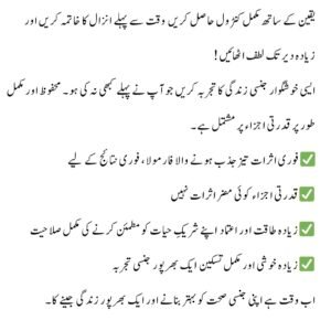 سرگرمی سے 15 منٹ پہلے لگیں گے اور بس کمال دیکھیں۔ شکر ہے اب بیوی کے لیے شرمندگی نہیں ہوتی۔ zabardast quality hai.
